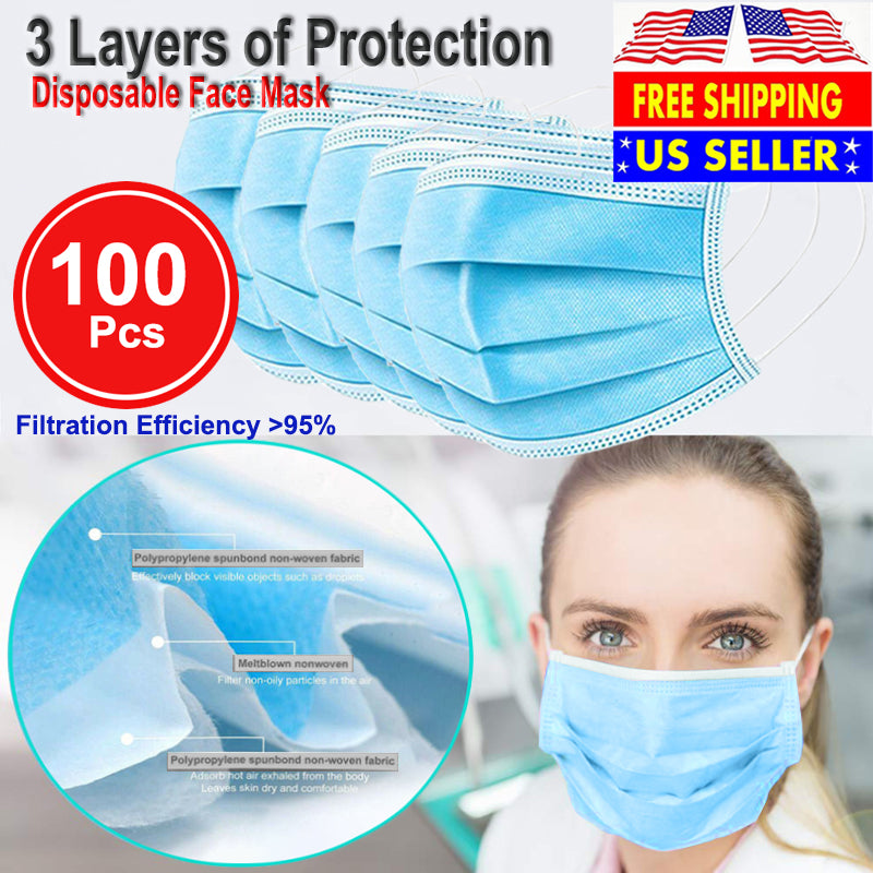100 PCS Face Mask Non Medical Surgical Disposable 3Ply Earloop Mouth Cover - Blue (with Box)