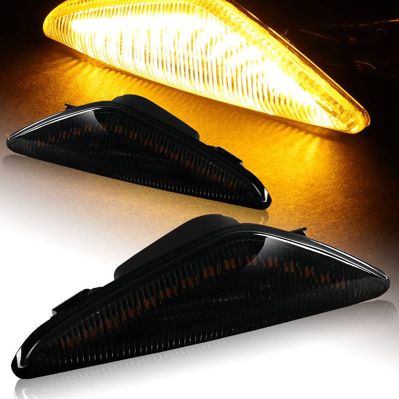 2008-2014 BMW X6 E71 E72 Amber LED Turn Signal Front Side Marker Lights -Smoked Lens