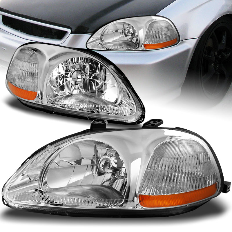 For 1996 - 1998 Honda Civic EK 2/3/4 Door Headlights -Chrome Housing / Clear Lens / Amber Reflectors