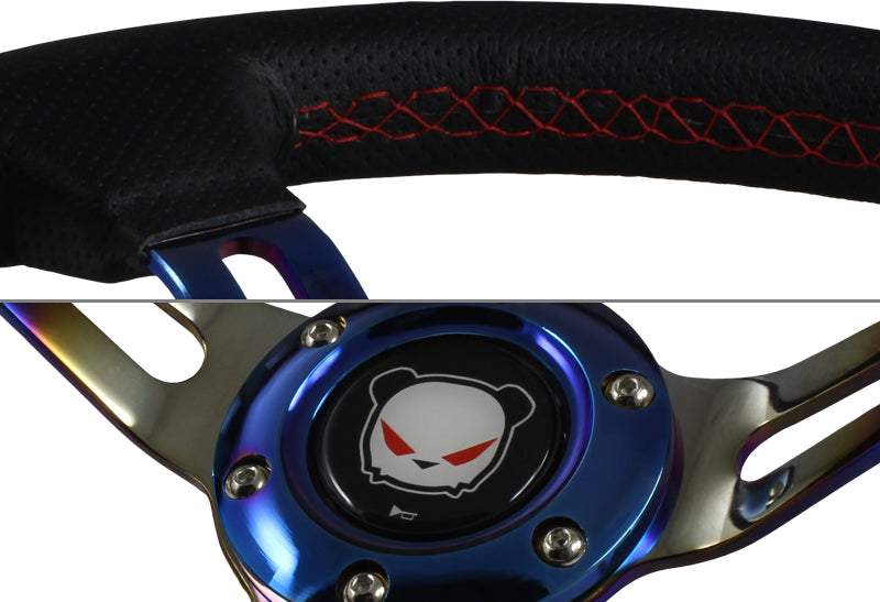 350mm 6-Bolt Hole Black Leather Red Stitch Grip With Titanium Blue 3-Spoke Racing Steering Wheel