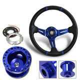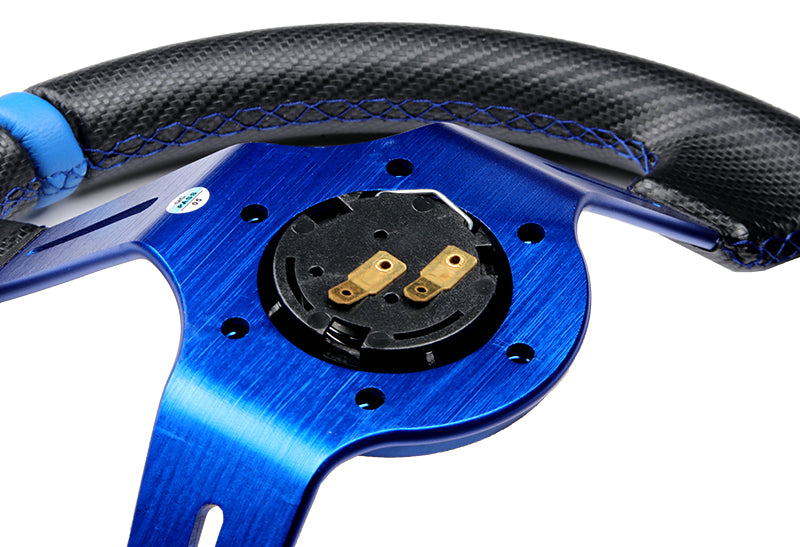 For 1993-2006 Nissan Altima 350mm Blue / Carbon PVC Leather Steering Wheel + Blue Aluminum Hub