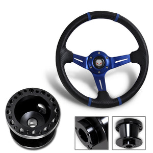 For 2002-2006 Acura RSX 350mm Blue / Carbon PVC Leather Steering Wheel + Black Aluminum Hub