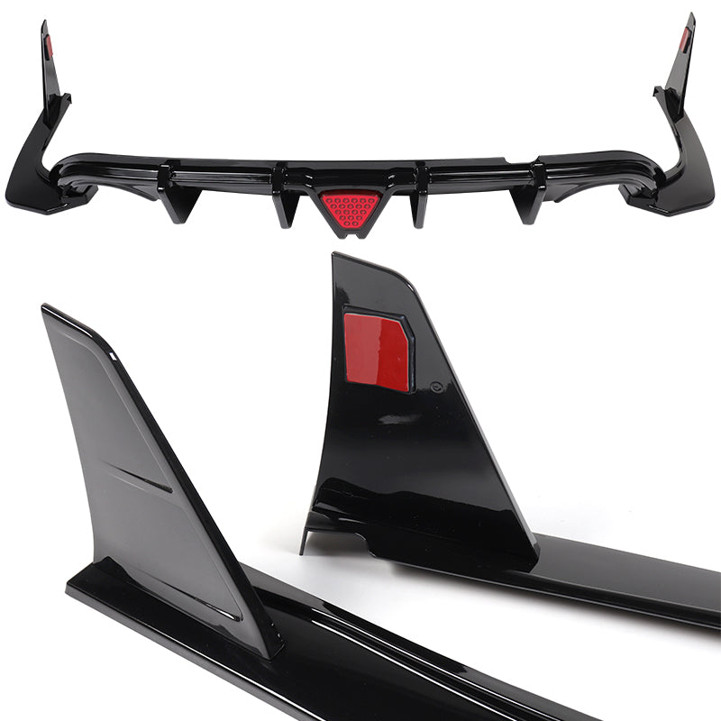 For 2014-2017 Infiniti Q50 Painted Black Rear Bumper Diffuser Lip W / LED Light
