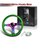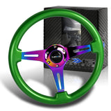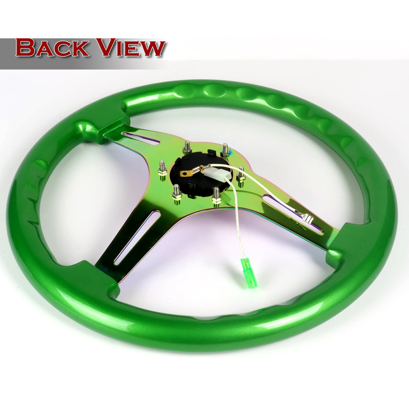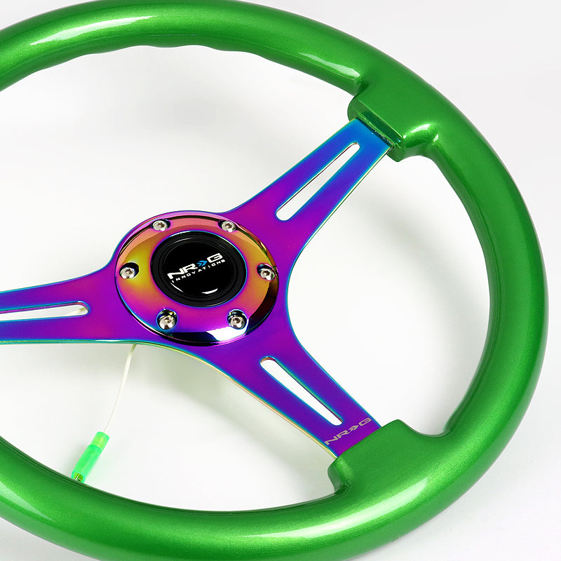 NRG 13.75" 350mm 6-Bolt Hole Green Classic Wood Grain Grip Aluminum Finished 3-Spoke Steering Wheel ST-015MC-GN -Neo Chrome Spoke
