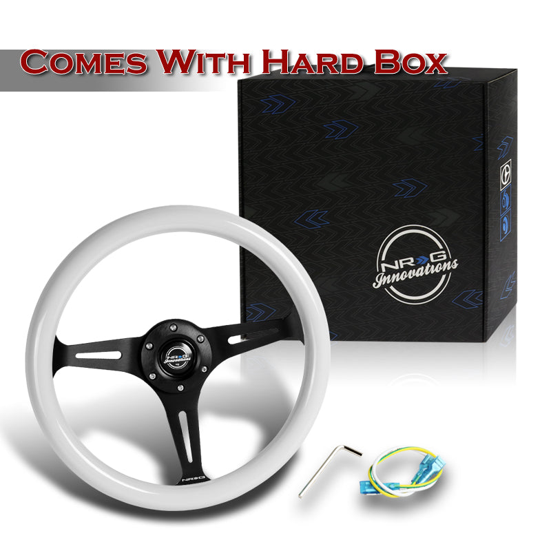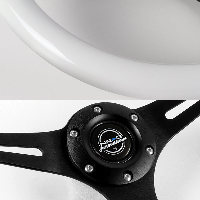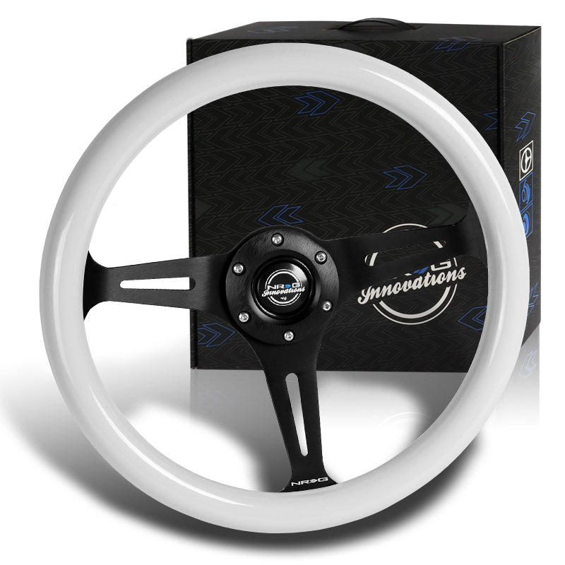 NRG 13.75" 350mm 6-Bolt Hole White Classic Wood Grip Aluminum Finished 3-Spoke Steering Wheel ST-015BK-WT -Black Spoke