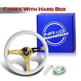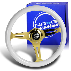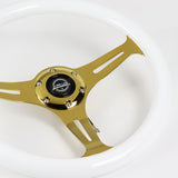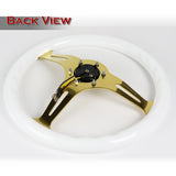 NRG 13.75" 350mm 6-Bolt Hole White Classic Wood Grip Aluminum Finished 3-Spoke Steering Wheel ST-015CG-WT -Chrome Gold Spoke
