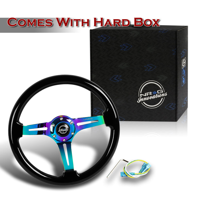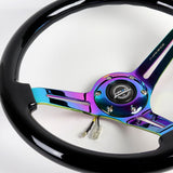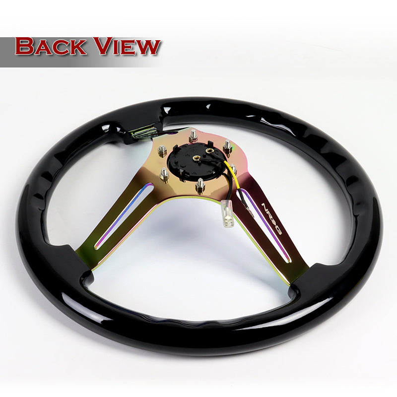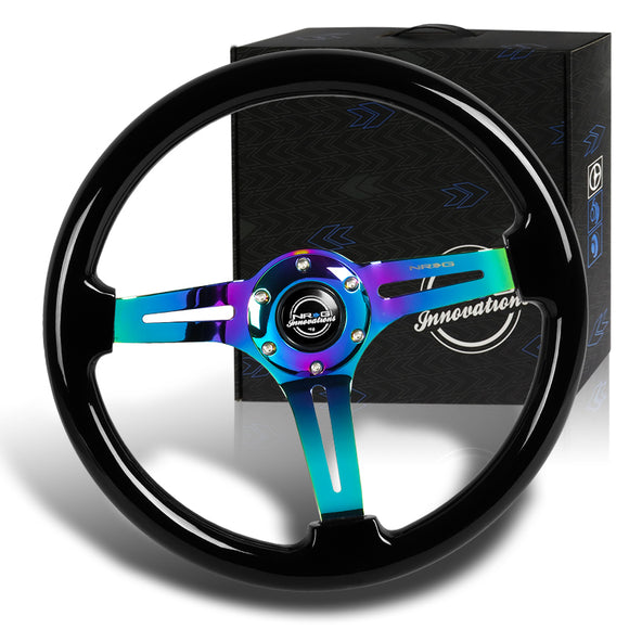 NRG 14" 350mm 6-Bolt Hole Black Classic Colored Wood Grip With Aluminum Finished 3-Spoke 3 Inch Deep Dish Steering Wheel RST-018BK-MC -Neo Chrome Spoke