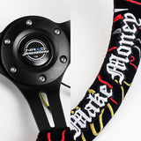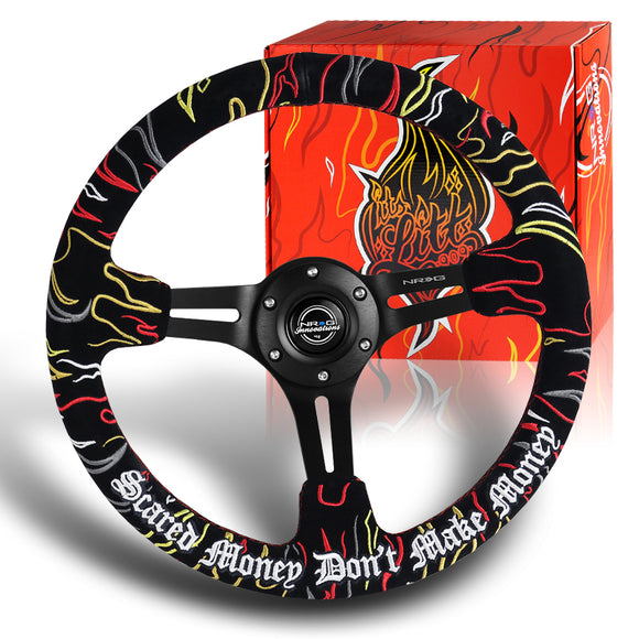 NRG 14" 350mm Ryan Litteral 6-Bolt Hole V3 Black Suede Grip With Aluminum Finished 3-Spoke 3 Inch Deep Dish Steering Wheel RST-018MB-RLB -Black Spoke