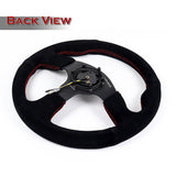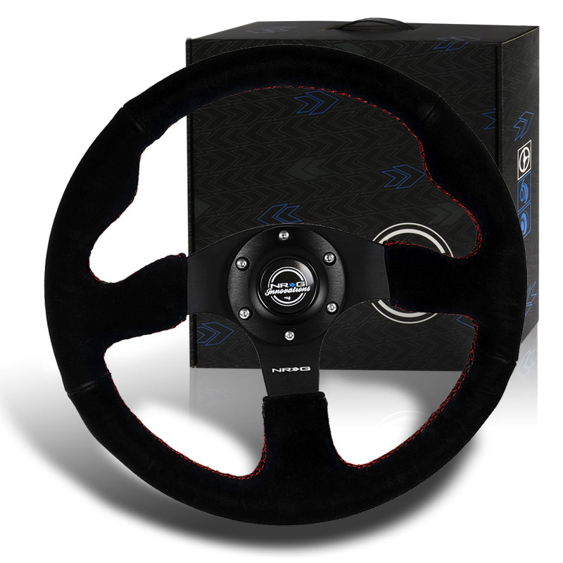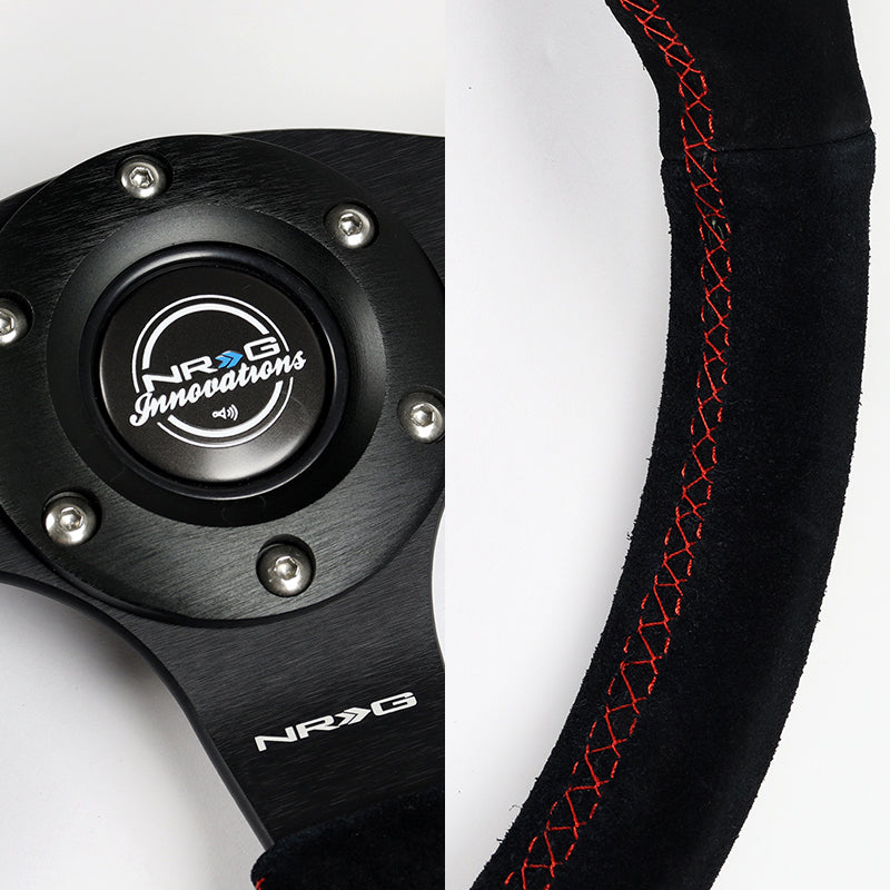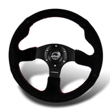 NRG Racing Style 13" 330mm 6-Bolt Hole Reinforced Black Suede Grip With Aluminum Finished 3-Spoke Black Center Steering Wheel RST-012S-RS -Red Stitch