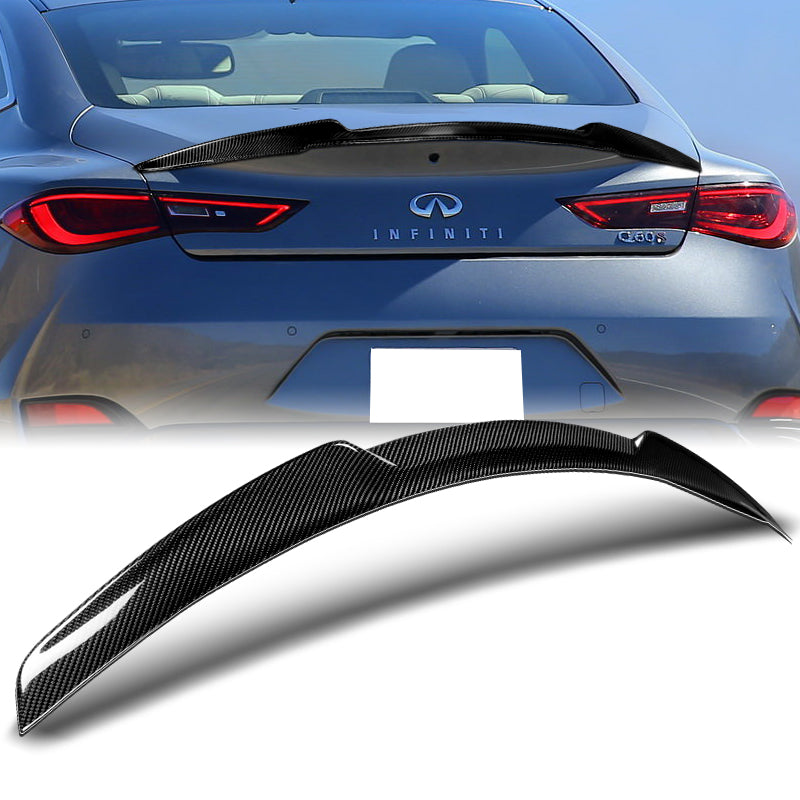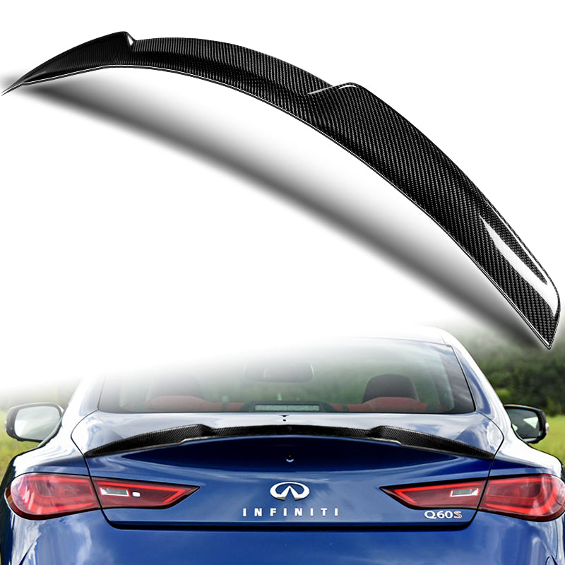 V-Style Rear Trunk Lip Duckbill Spoiler Wing For 2017-2022 Infiniti Q60 2-DR / Coupe -Real Carbon Fiber