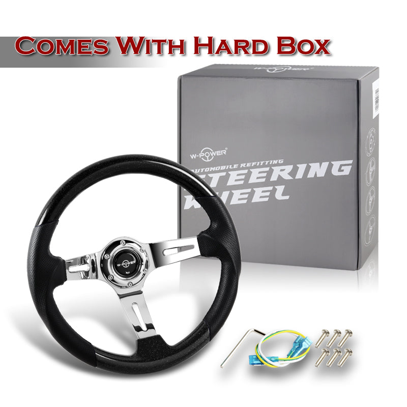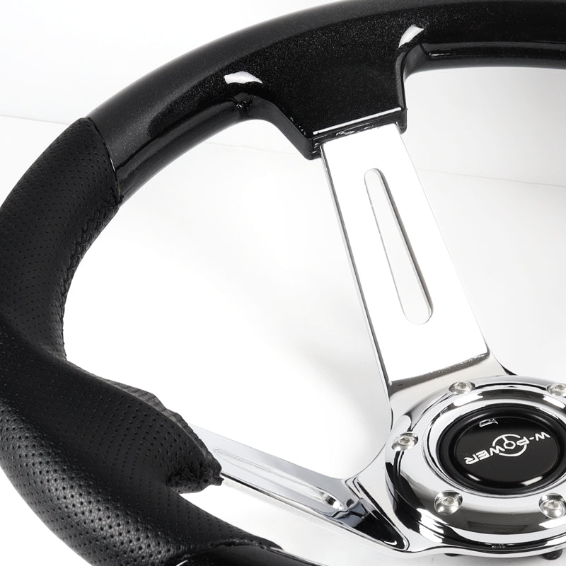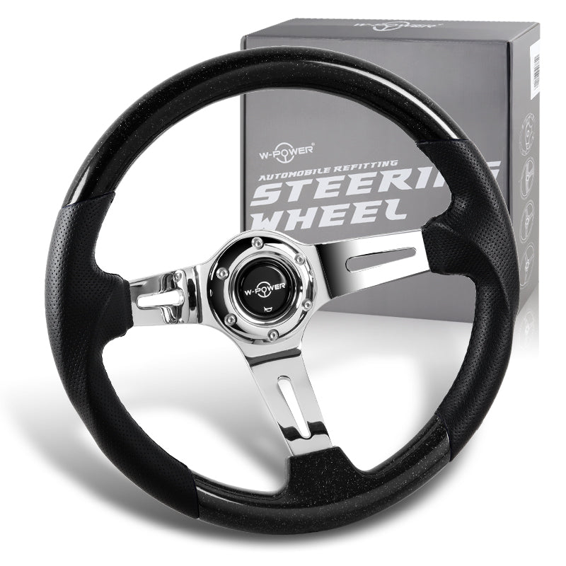 • 343mm 13.5 Inches W-Power 3-Spoke Chrome Center Steering Wheel