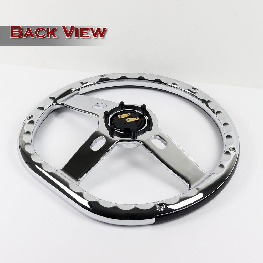 • 350mm 14 Inches W-Power 3-Spoke Chrome Center Steering Wheel
