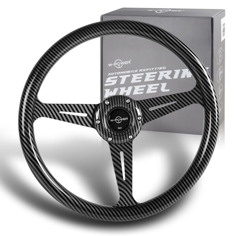 • 350mm 14 Inches W-Power 3-Spoke Carbon Fiber Look Center Steering Wheel
