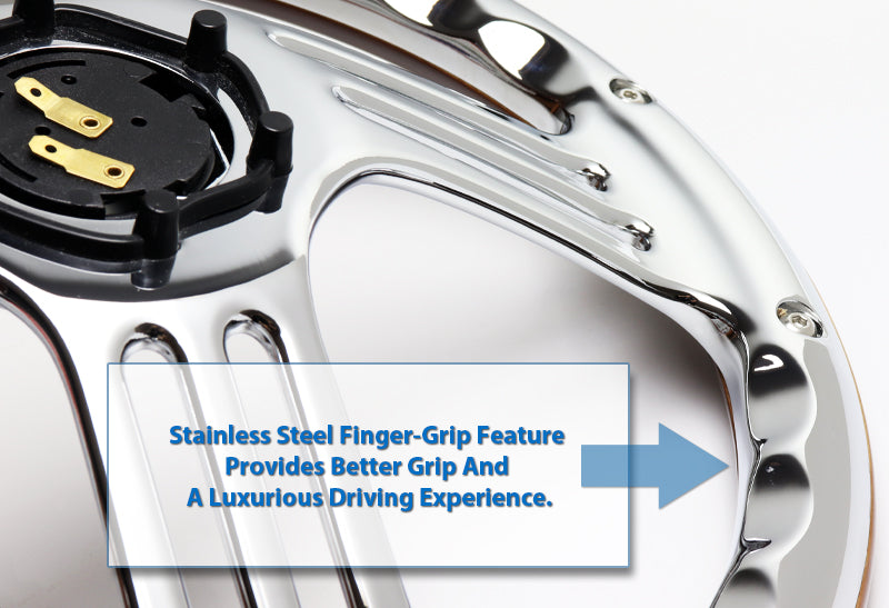 - 350mm 14 Inches W-Power 3-Spoke Chrome Center Steering Wheel