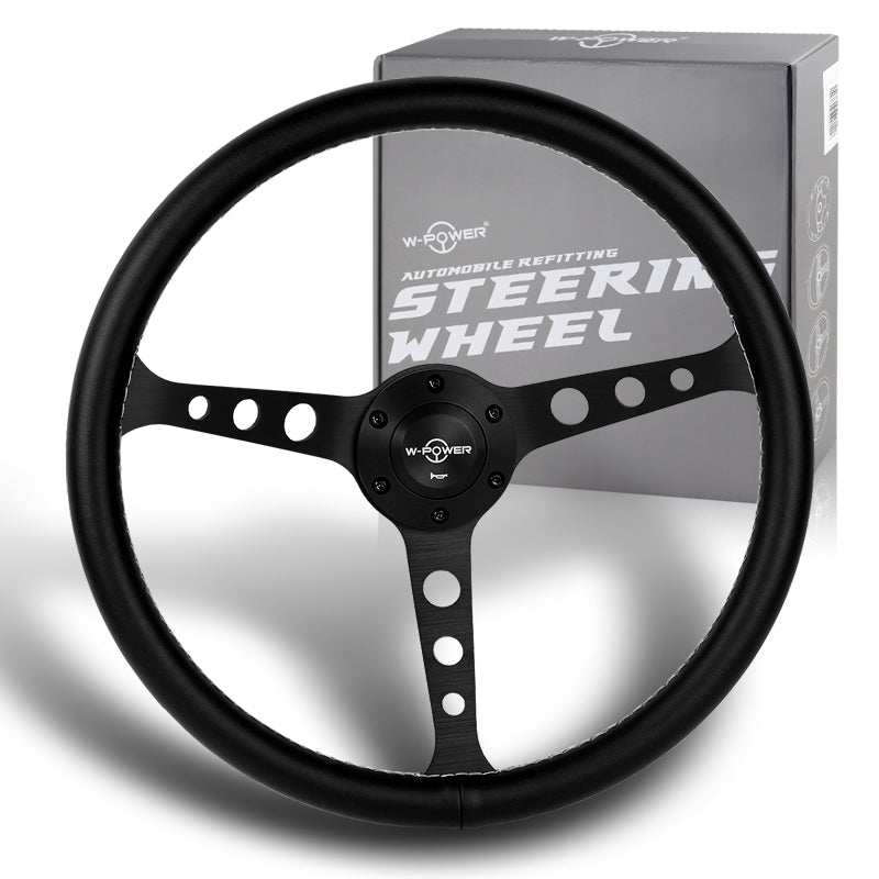 • 380mm 15 Inches W-Power 3-Spoke Matte Black Center Steering Wheel