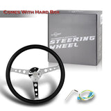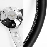 W-Power 15" 380mm 6-Bolt Hole JDM Euro VIP Style Classic Trim Grip With Aluminum Finished 3-Spoke 3 Inches Deep Dish Steering Wheel -Black Leather Grip With White Stitch/Chrome Center Spoke