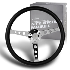 - 380mm 15 Inches W-Power 3-Spoke Chrome Center Steering Wheel