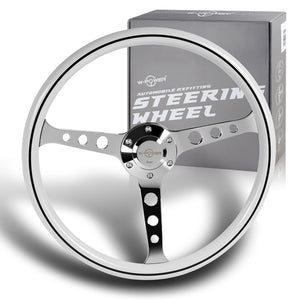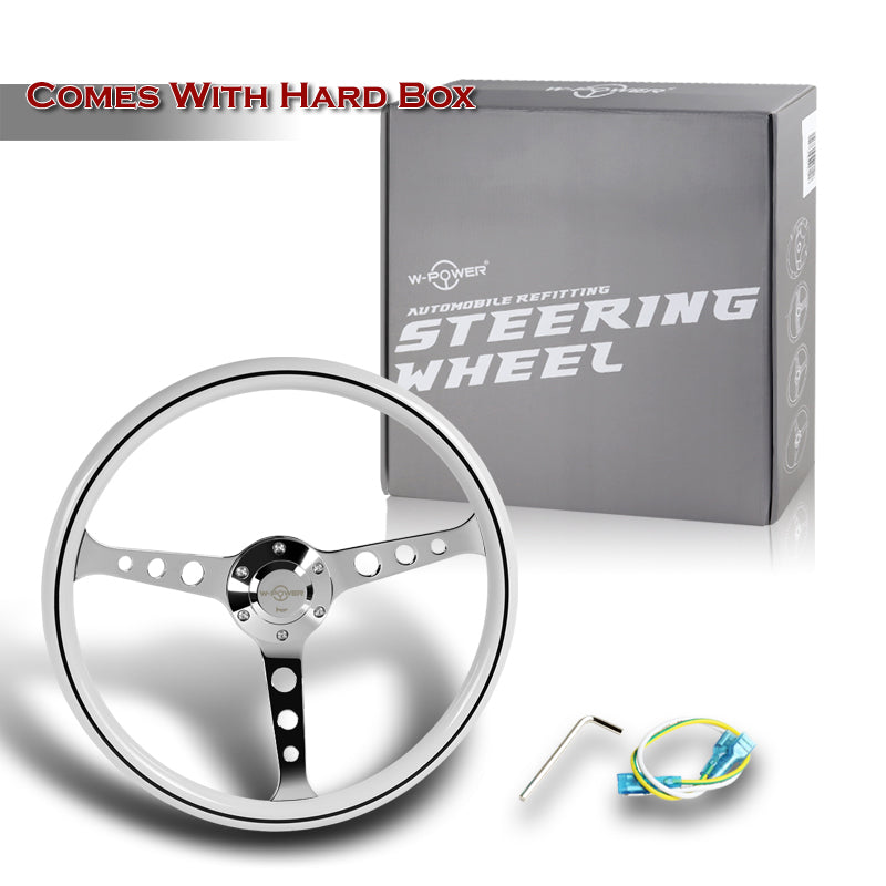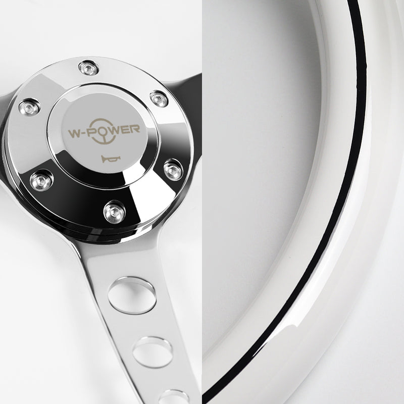 - 380mm 15 Inches W-Power 3-Spoke Chrome Center Steering Wheel