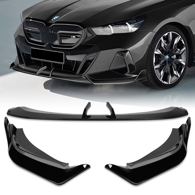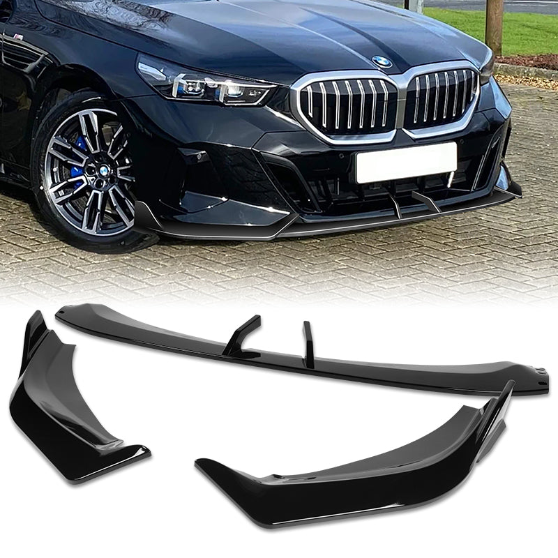 WP-Style Front Bumper Splitter Spoiler Lip 3PCS For 2024-2025 BMW 5-Series G60 G61 M-Sport -Painted Black