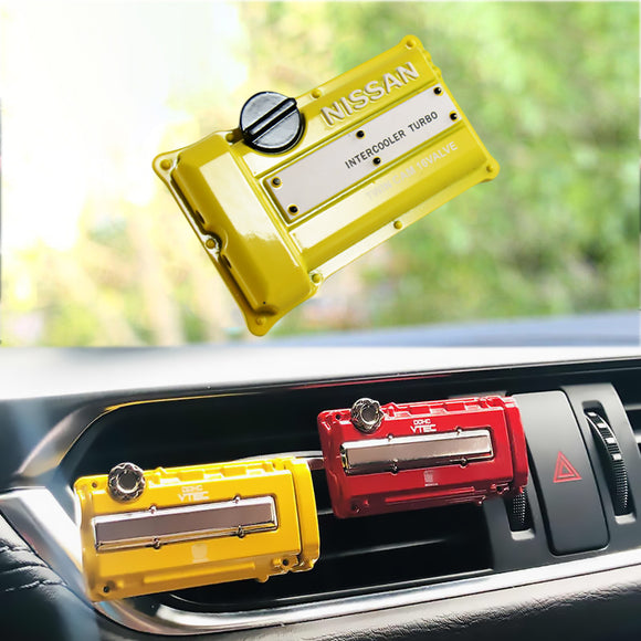 NISSAN Stainless Steel Engine Valve Cover Yellow Car Vent Clip Air Freshener Kit - COLOGNE Scent