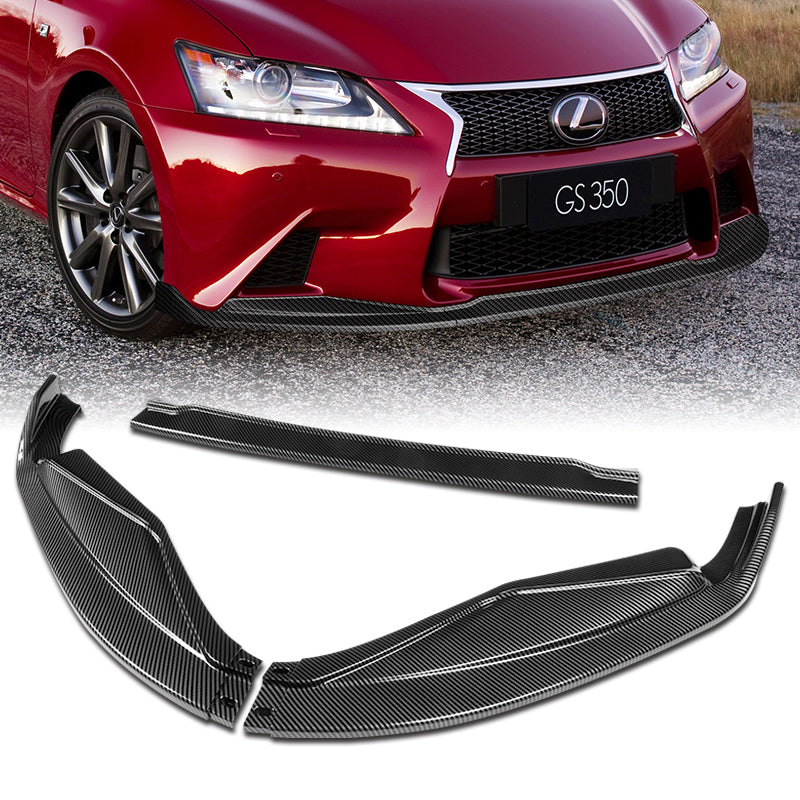 For 2013-2015 Lexus GS350 GS450h F-Sport Real Carbon Fiber 3-Piece Front Bumper Body Spoiler Splitter Lip Kit