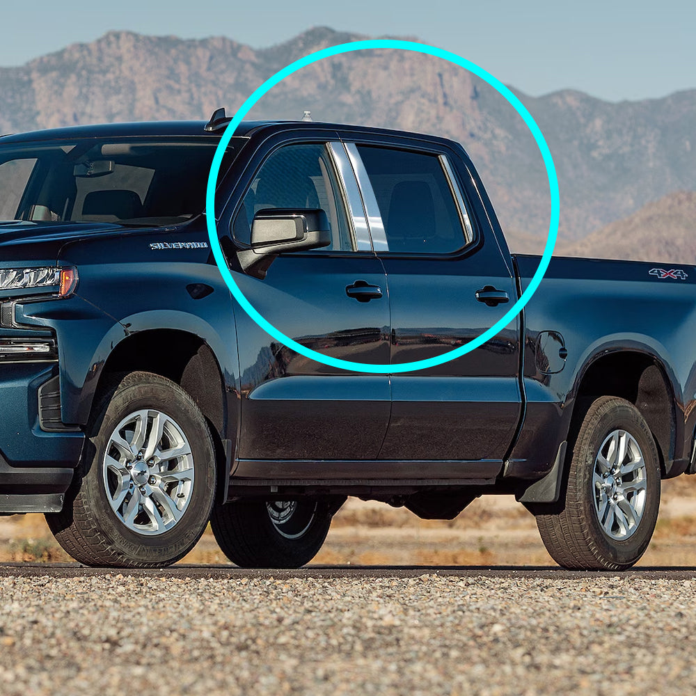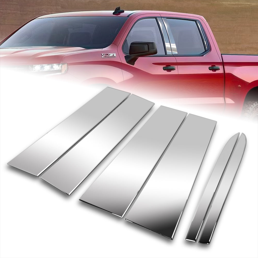 For 2019 - 2025 Chevrolet Silverado / GMC Sierra 1500 Mirror Chrome Exterior Stainless Car Window Door Pillar Trim 6-PCS