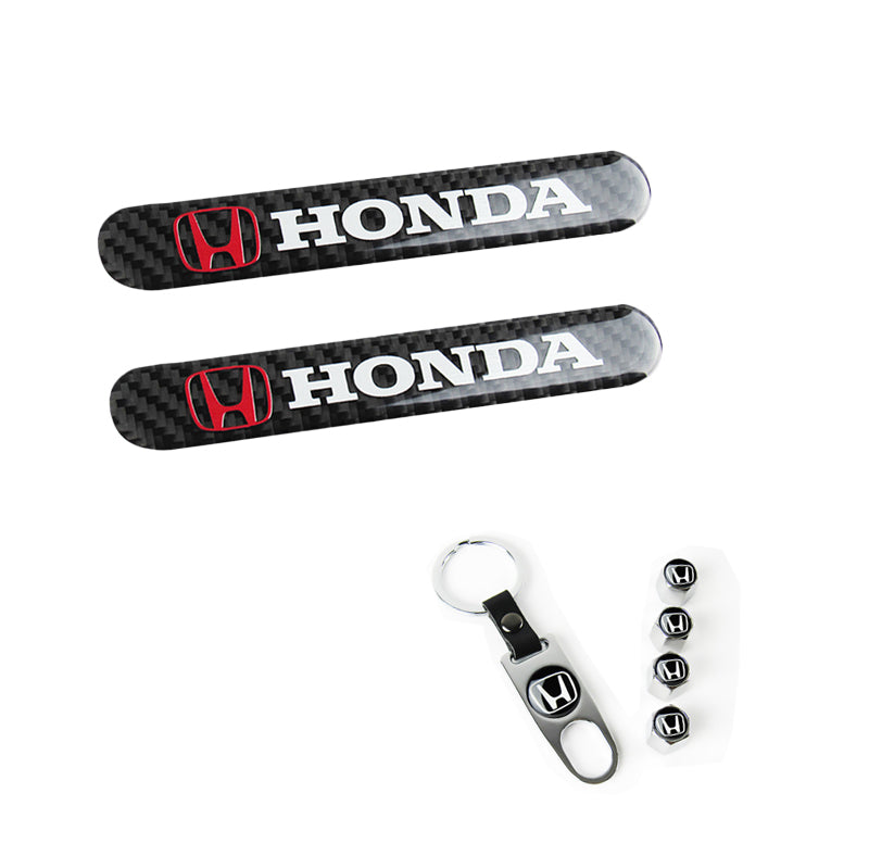 HONDA LOGO Set Emblems with Silver Tire Valves Wheel Air Caps Keychain - US SELLER
