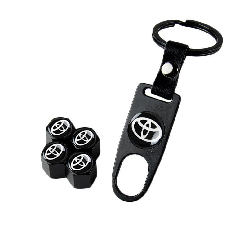 Toyota LOGO Set Emblems with Keychain Tire Wheel Valves Air Caps - US SELLER