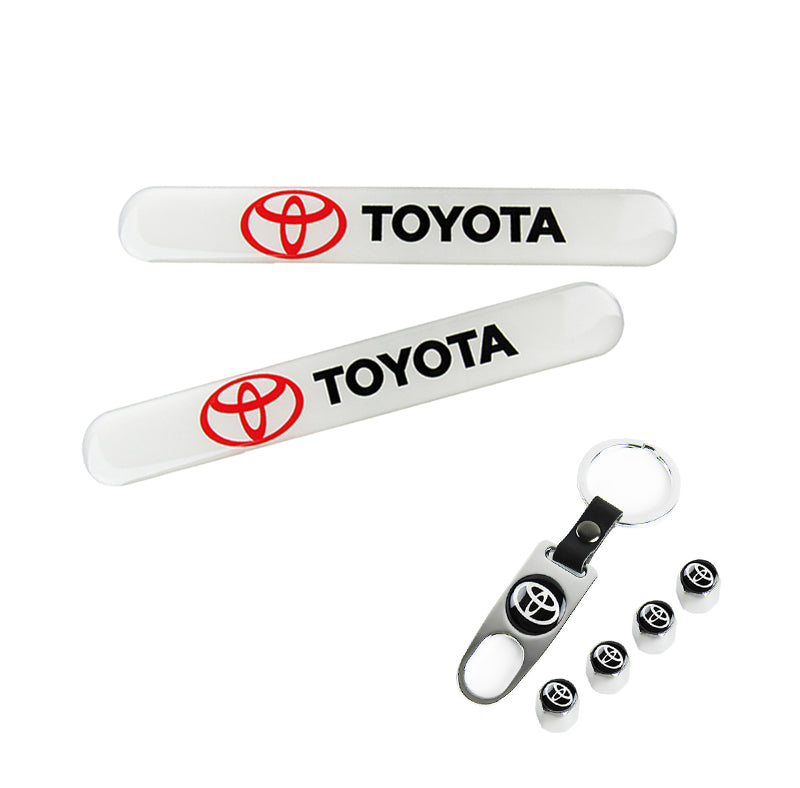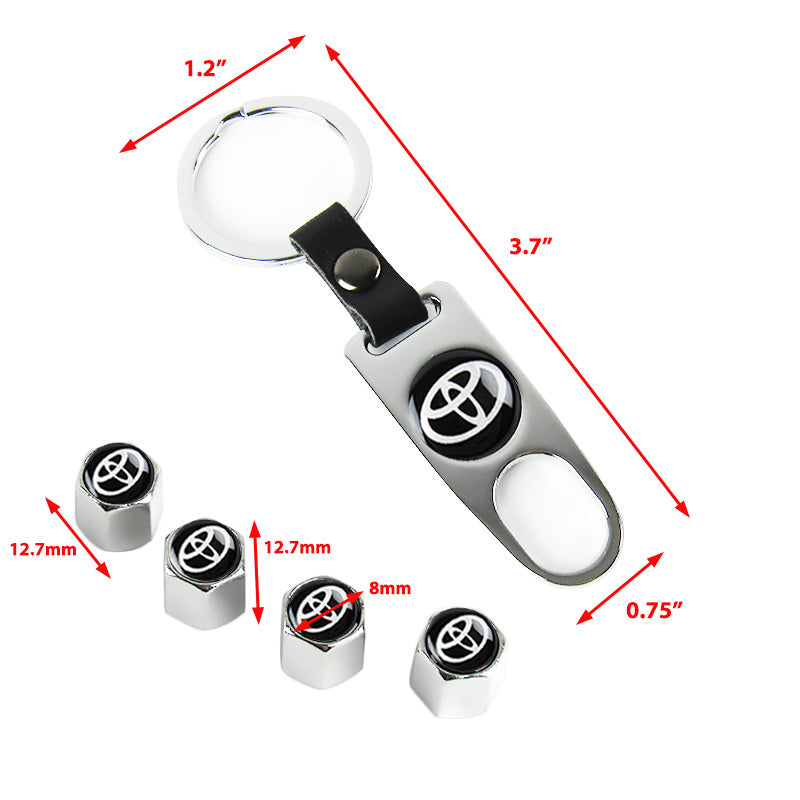 Toyota Set LOGO Emblems with Keychain Tire Wheel Valves Silver Air Caps - US SELLER