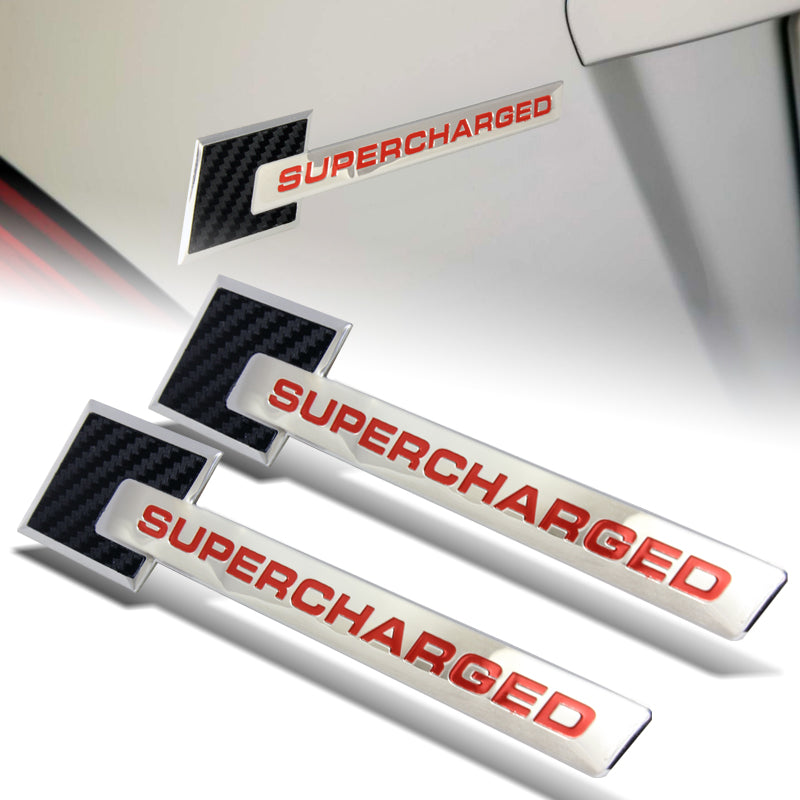 Carbon Fiber Supercharged Aluminum Sticker Decal Emblem Badge Bumper / Trunk / Hood / Engine -Silver Red
