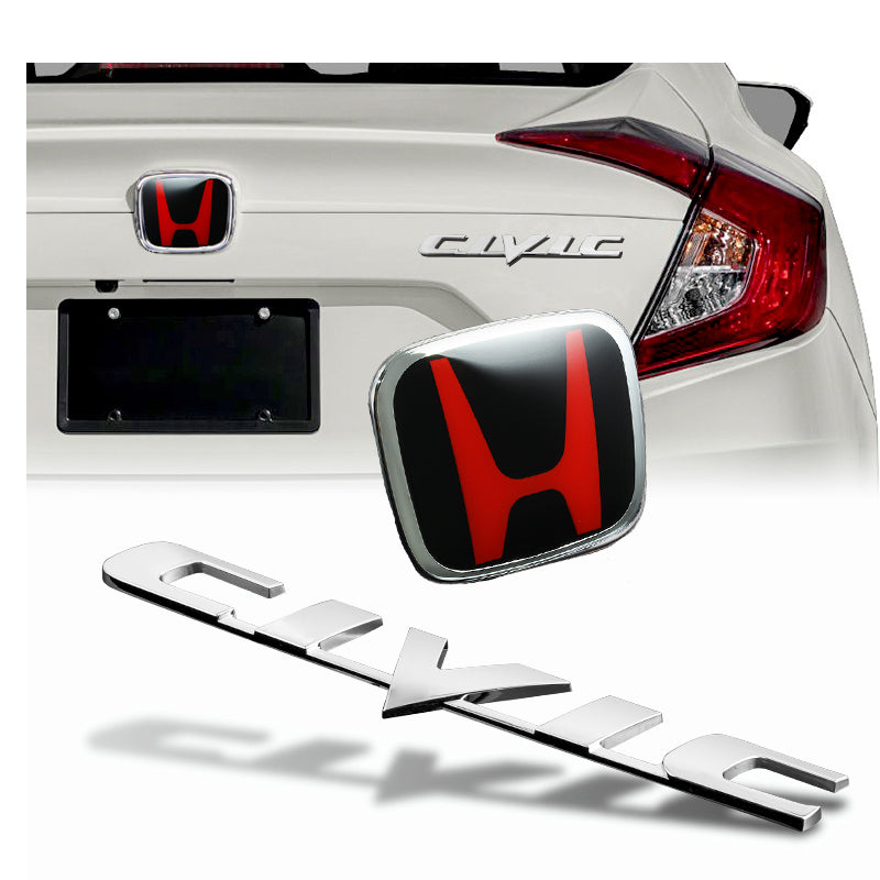 For 2006-2011 HONDA CIVIC COUPE Set JDM Red/Black H Rear Emblem Badge with Civic Rear Chrome Emblem