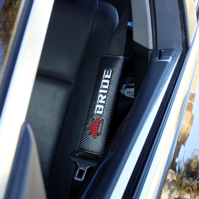 JDM BRIDE Set Carbon Embroidery Seat Belt Cover Shoulder Pads with Bride Keychain
