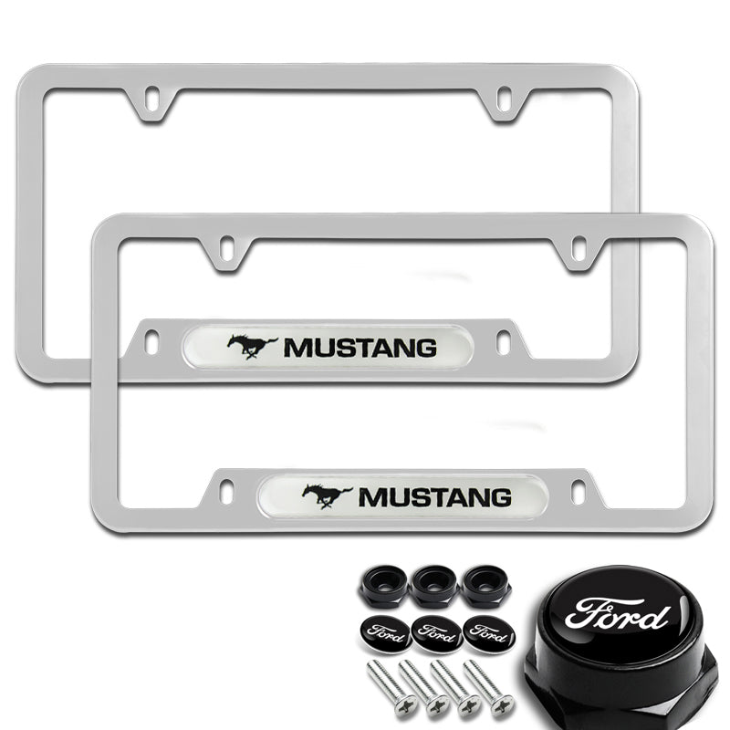 Ford Mustang 2pcs Stainless Steel License Plate Frame with Caps Bolt Brand New SET