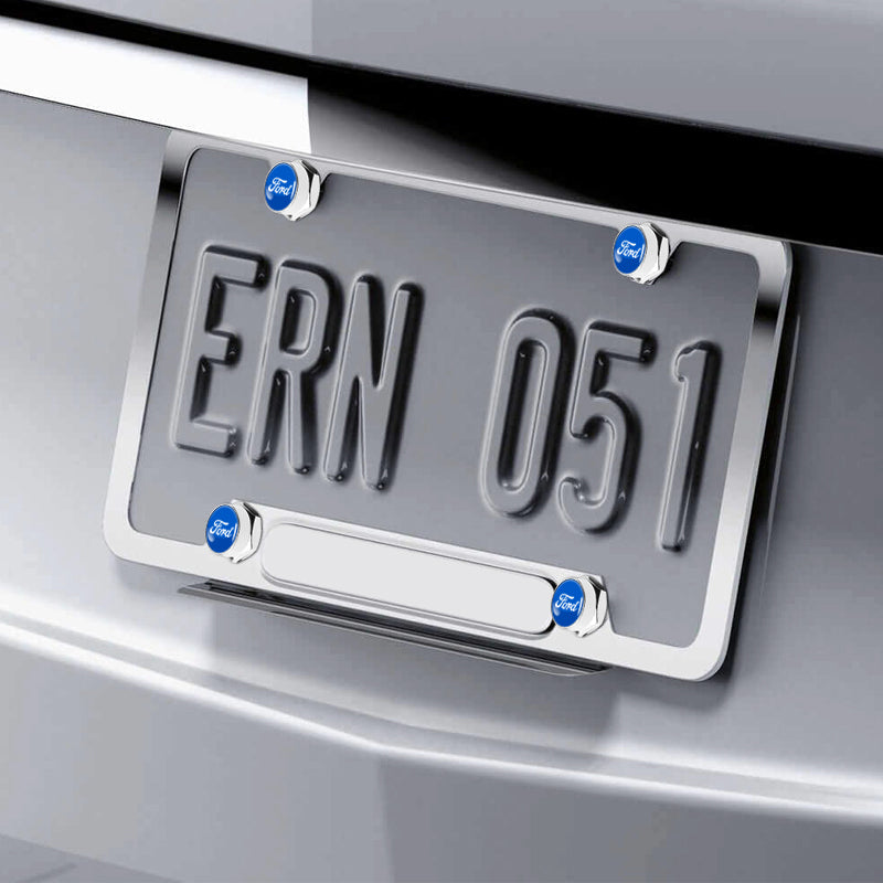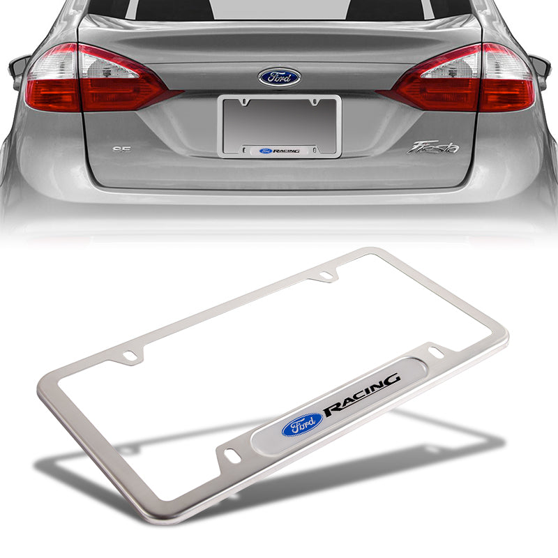FORD Racing Brand New Stainless Steel 2pcs License Plate Frame with Caps Bolt Chrome SET
