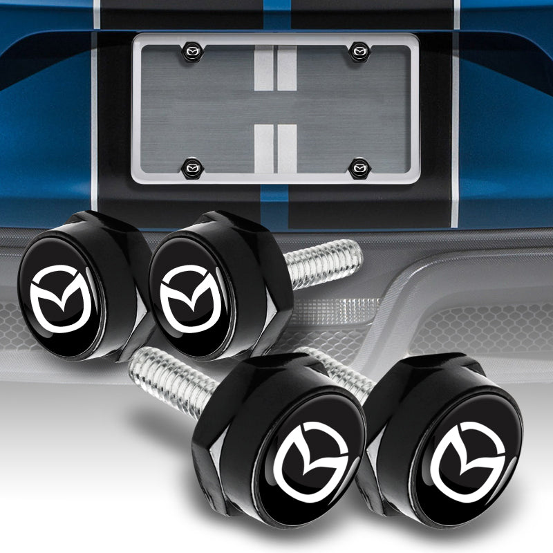 MAZDA Mazdaspeed 2 pcs Black Stainless Steel License Plate Frame with Caps Bolt Screw Set