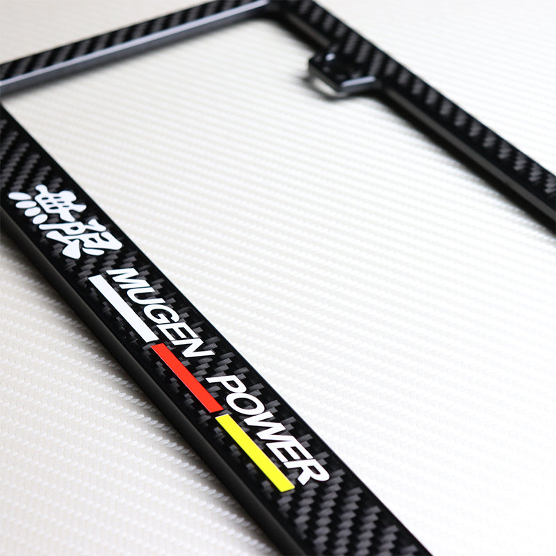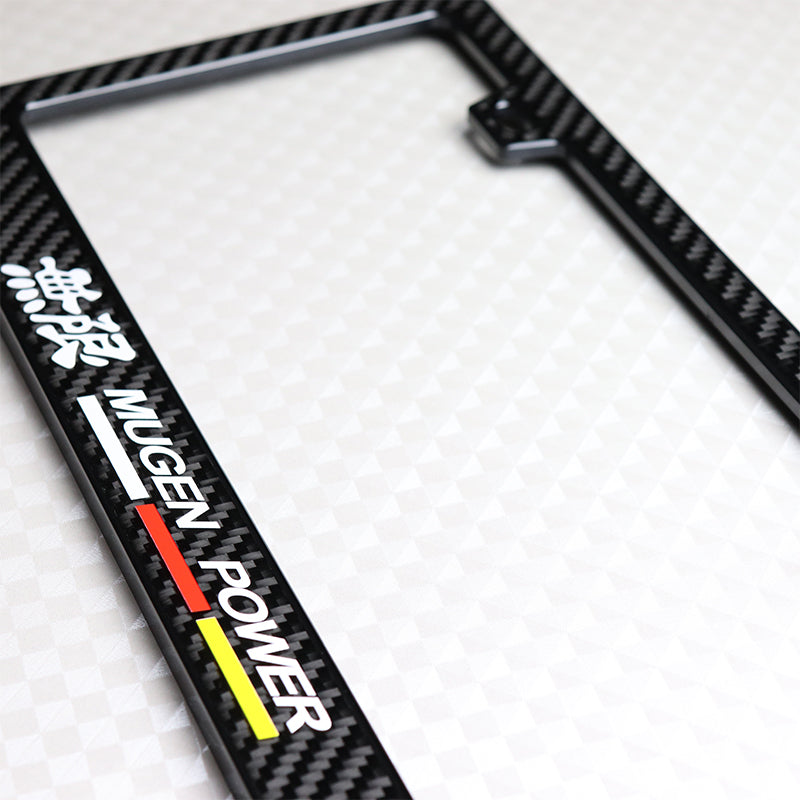 Mugen 100% Real Carbon Fiber License Plate Frame with Caps & Screws
