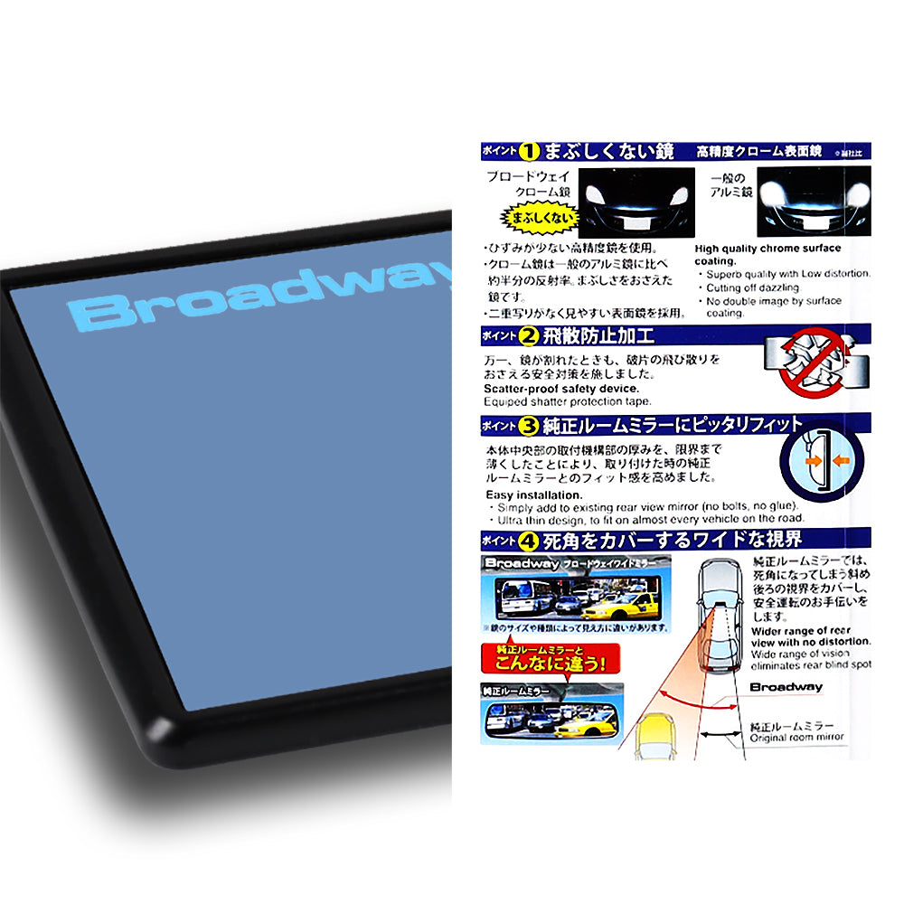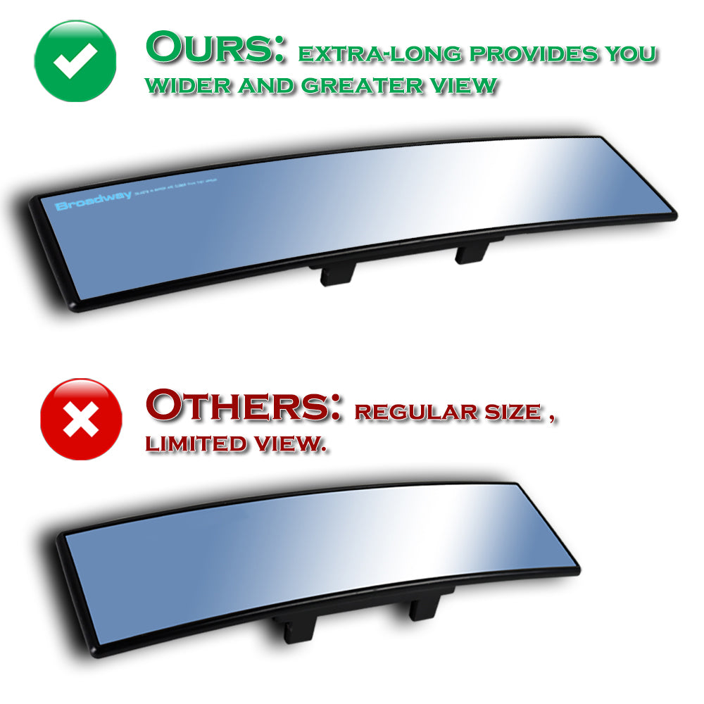 Broadway 400MM Wide Universal Interior Clip On Largest Visibility Rear View Mirror -Blue Tint Convex