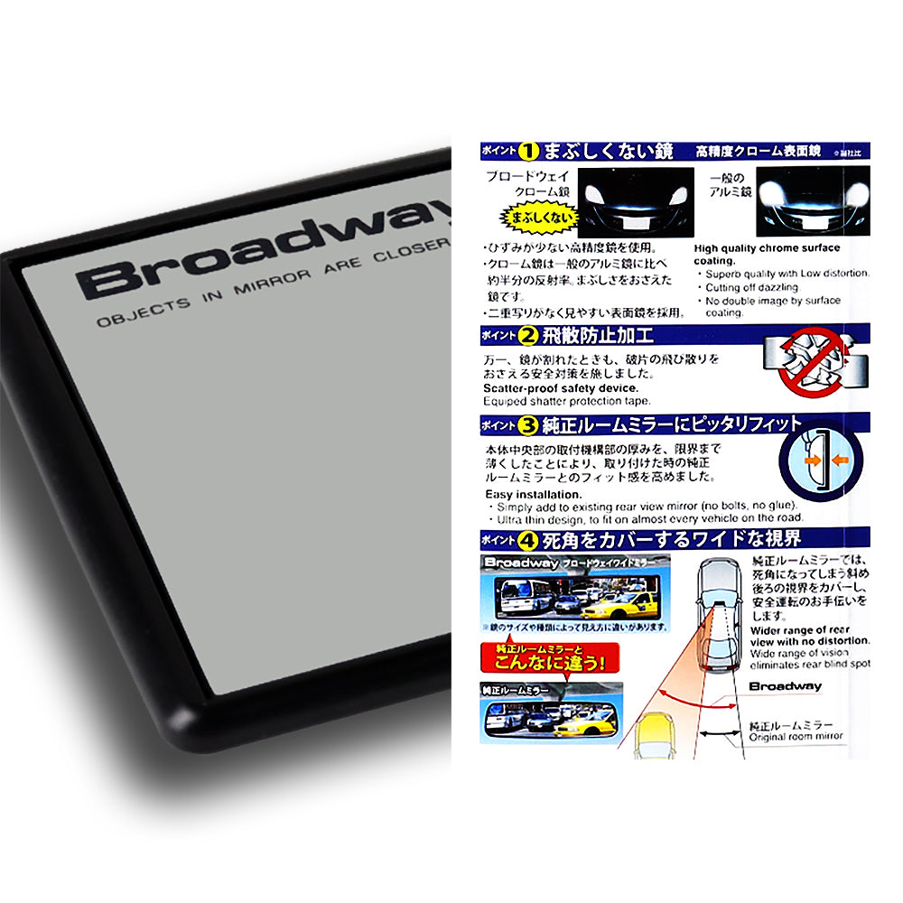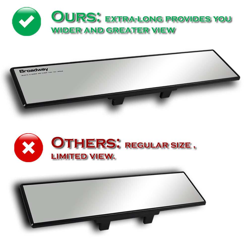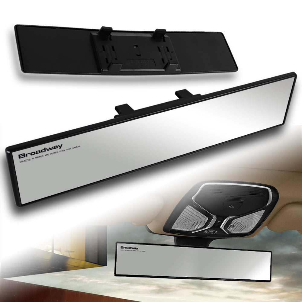 Broadway 400MM Wide Universal Interior Clip On Largest Visibility Rear View Mirror -Clear Tint Flat