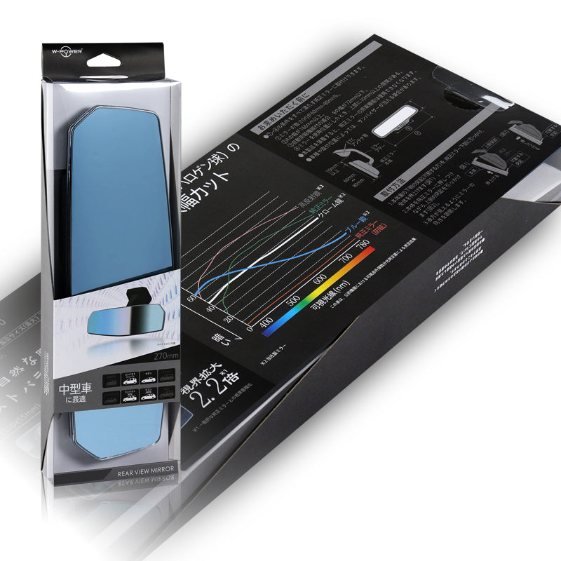 W-Power 270mm Wide Universal Interior Clip On Largest Visibility Panoramic Rear View Mirror -Blue Tint Flat