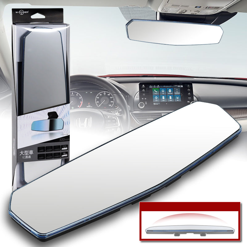 W-Power 300mm Wide Universal Interior Clip On Largest Visibility Panoramic Rear View Mirror -Clear Tint Convex