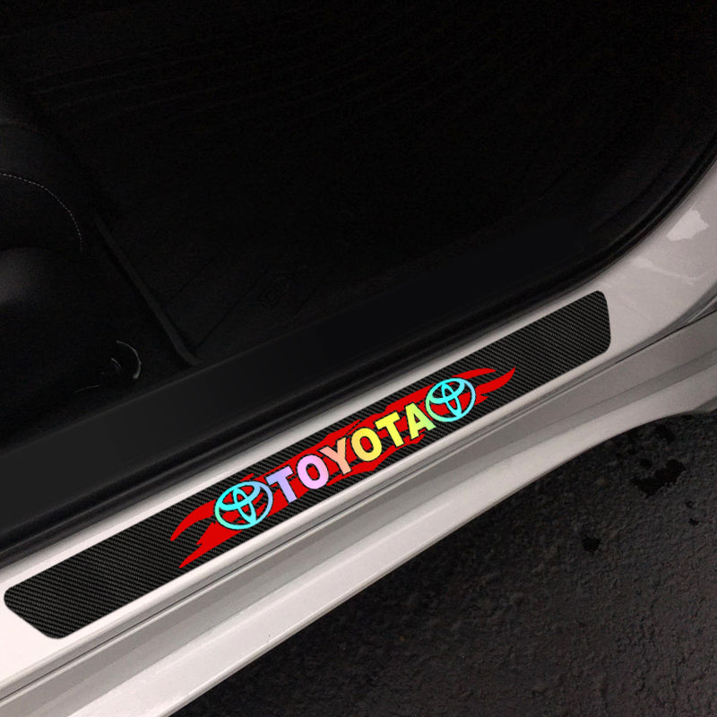 For TOYOTA NEW 4PCS Set 5D Carbon Fiber Texture Car Door Scuff Sill Cover Panel Step Protector