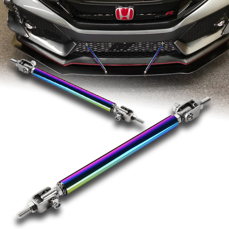 Adjustable 7" - 9" (100mm) Front Bumper Lip Splitter Diffuser Strut Rod Tie Support Bars -Neo Chrome