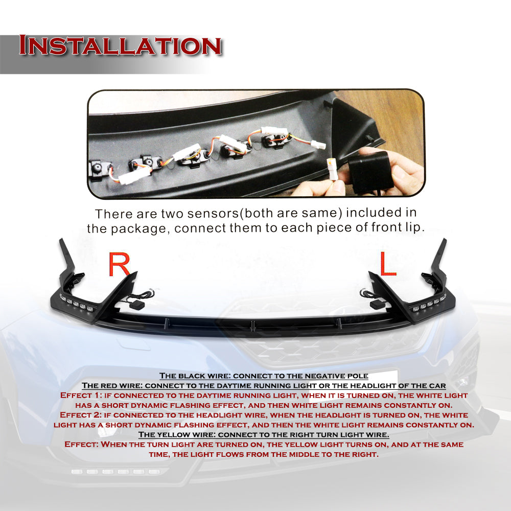 CS-Style For 2022 - 2025 Subaru WRX Front Bumper Lip Splitter With LED Sequential Light -Painted Black