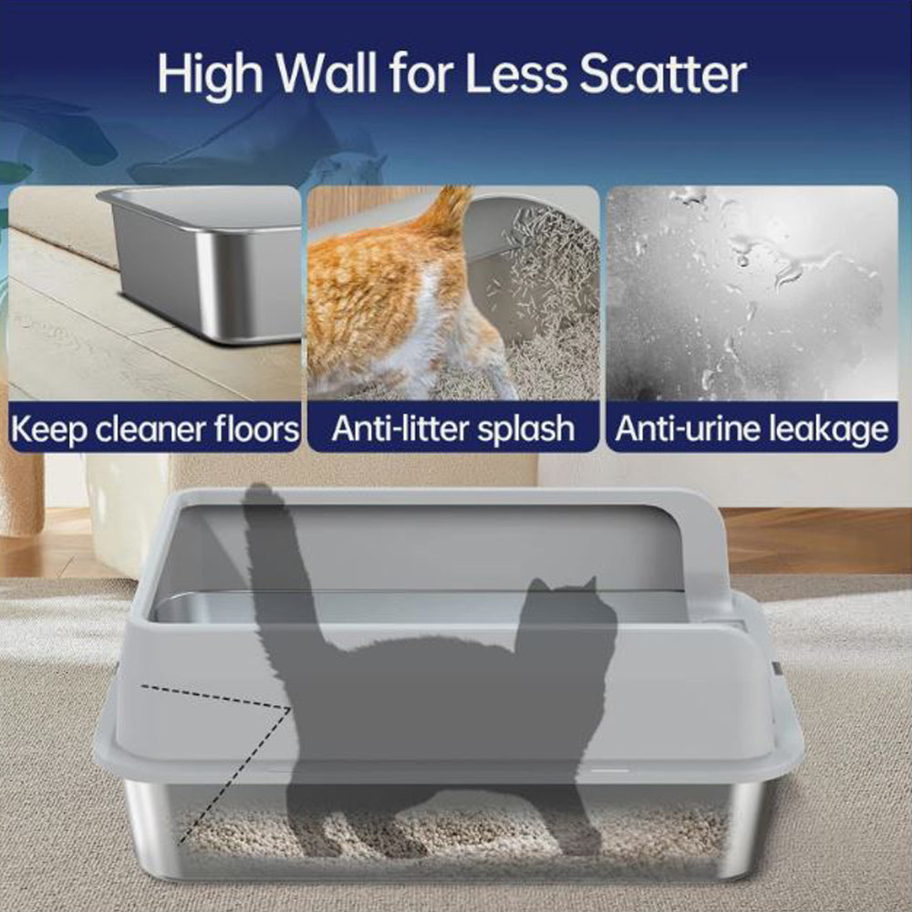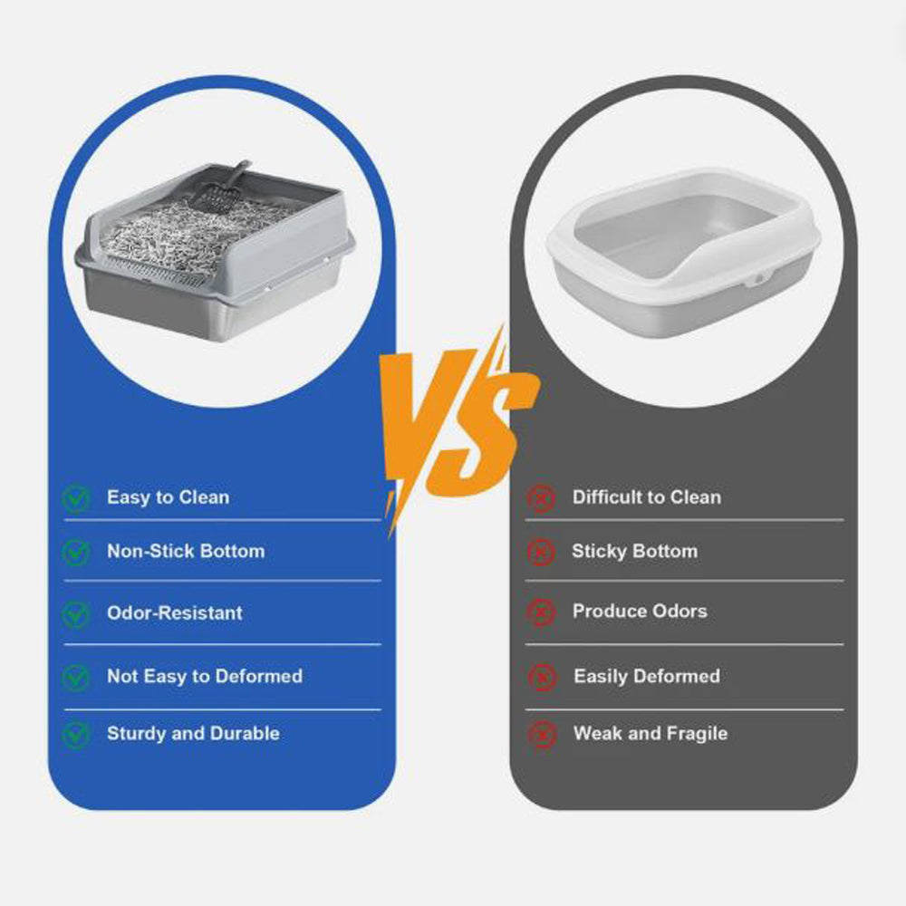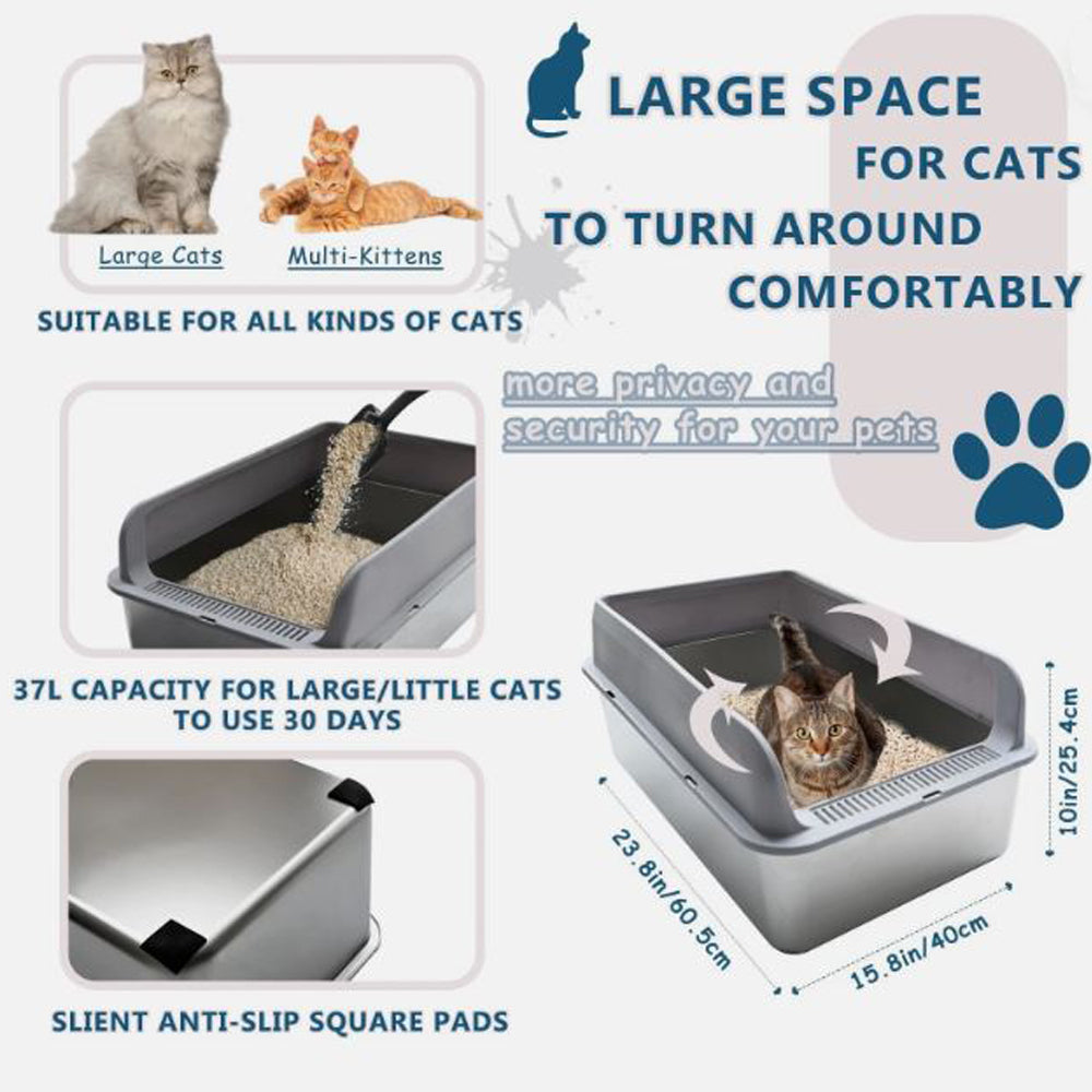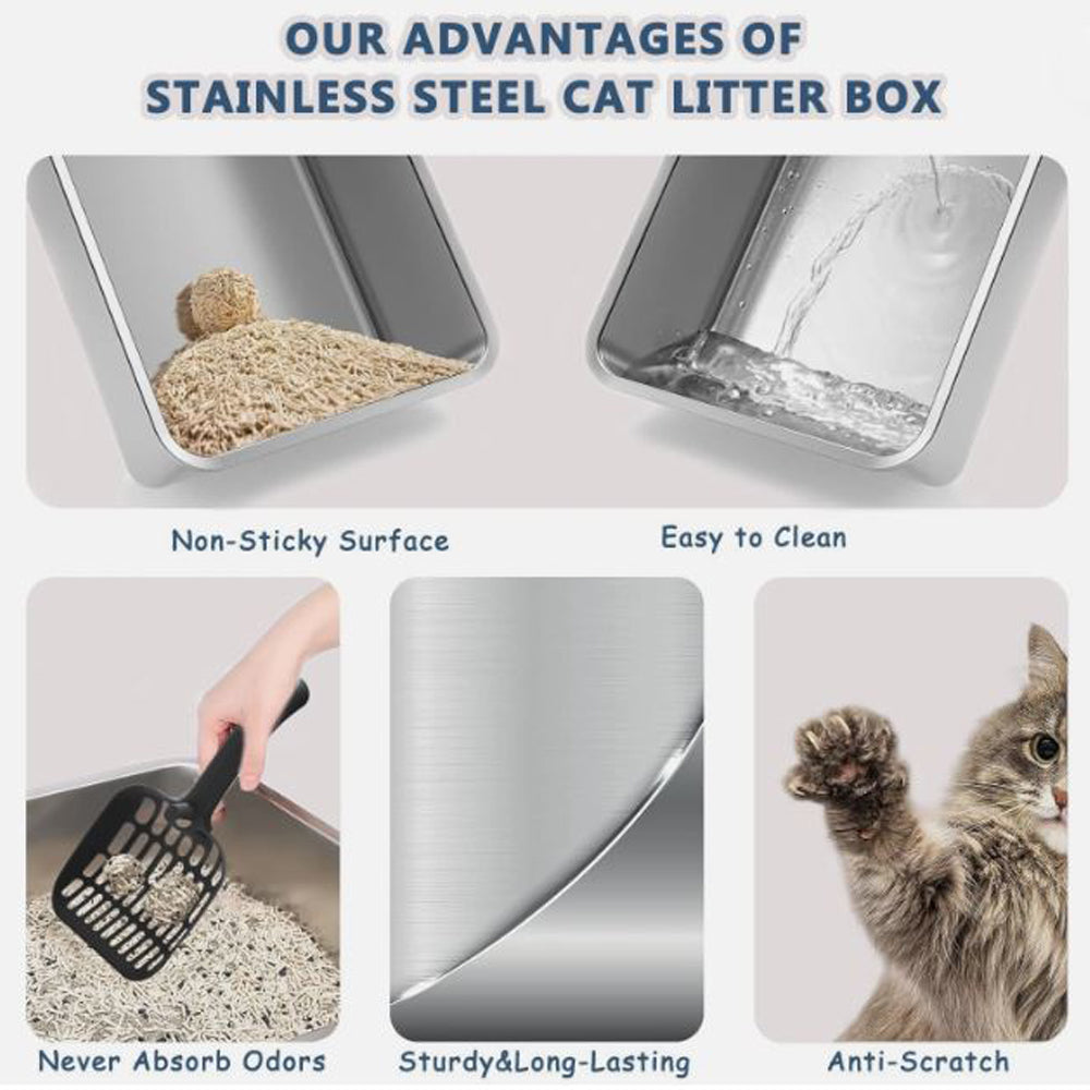 Upgrade to high-quality extra large stainless steel cat litter box with high sides and revolutionize your cat litter pan experience! Here's why our stainless steel litter box high wall is the ultimate choice for cat owners like you;