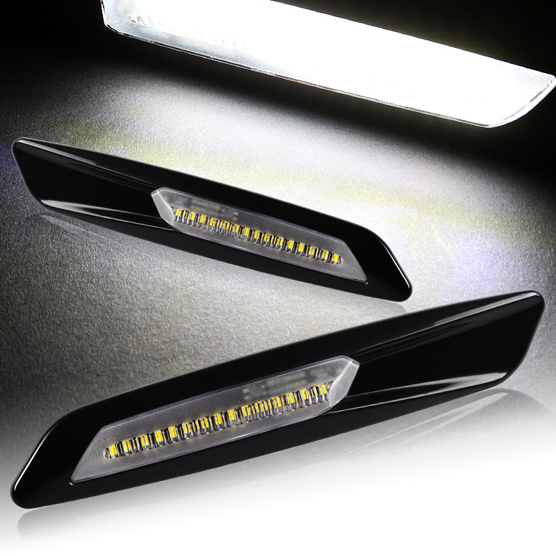 F10-Style BMW E81 E82 E90 E92 E60 E61 White LED Turn Signal Front Side Marker Lights -Clear Lens