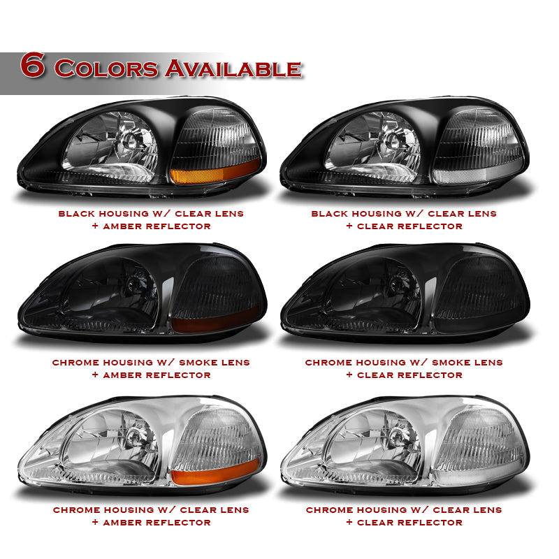 For 1996 - 1998 Honda Civic EK 2/3/4 Door Headlights -Chrome Housing / Smoke Lens / Amber Reflectors