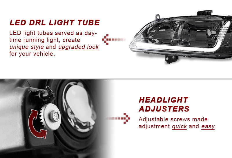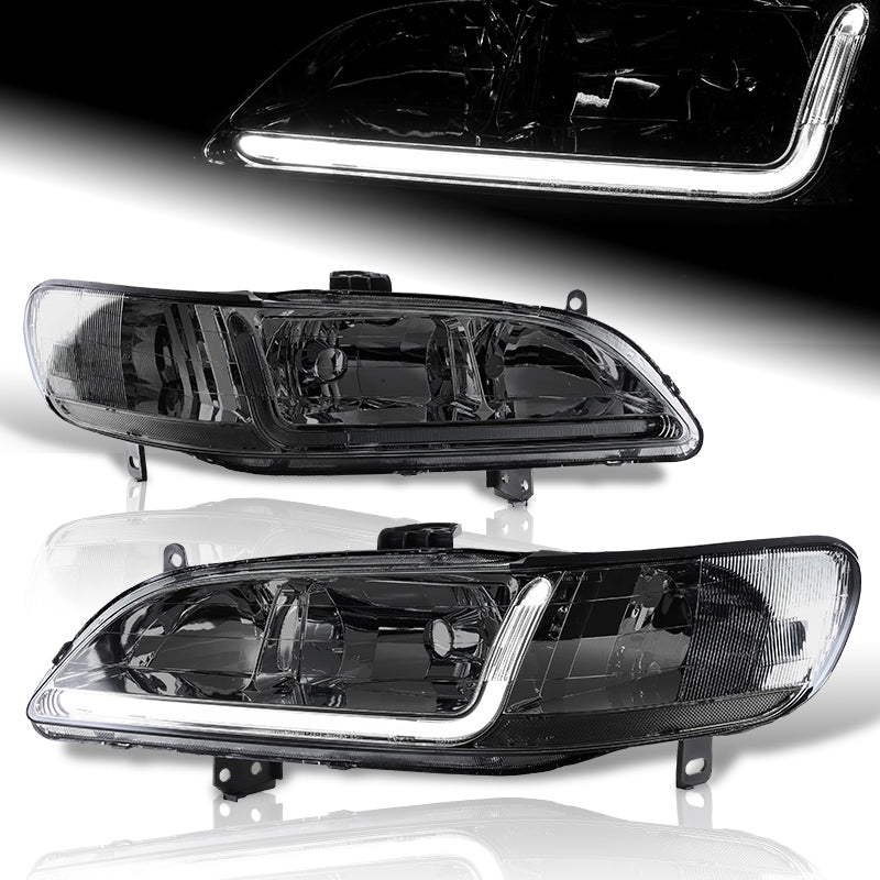 For 1998 - 2002 Honda Accord LED DRL Headlights -Chrome Housing / Smoke Lens / Clear Reflectors