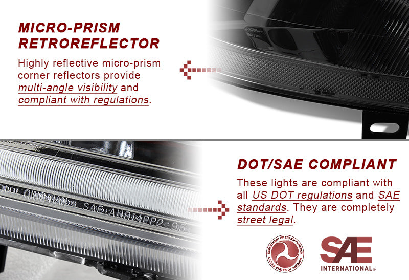 • CHROME housing with SMOKE lens DRL LED headlights and featuring CLEAR reflectors