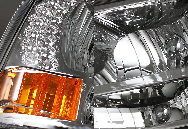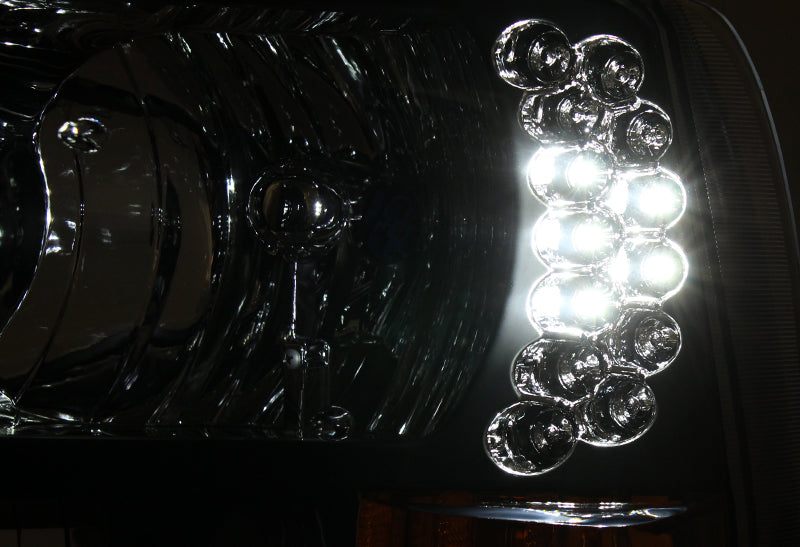 For 1999 - 2004 Ford F250 / F350 Super Duty / Excursion LED DRL Headlights -Chrome Housing / Clear Lens / Amber Reflectors