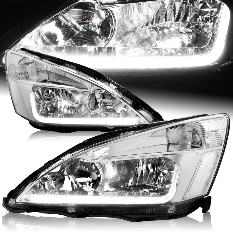 For 2003 - 2007 Honda Accord LED DRL Headlights -Chrome Housing / Clear Lens / Clear Reflectors